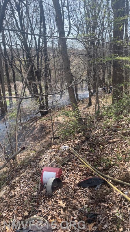 Unit's arrived to find about 1 acre of woods on fire moving up a steep hill with no threat to any structure's.